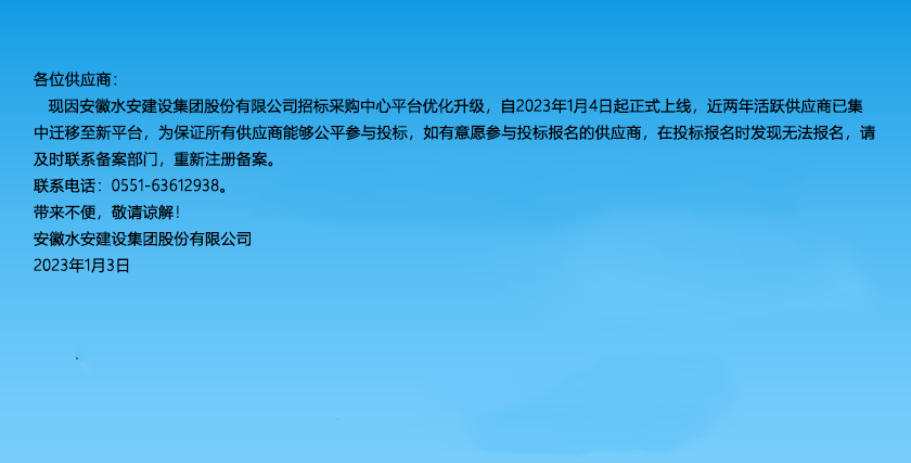 Copyright ? 2018 安徽水安建設(shè)集團(tuán)股份有限公司招標(biāo)采購中心 版權(quán)所有 最佳瀏覽效果 建議使用1024*768及以上分辨率